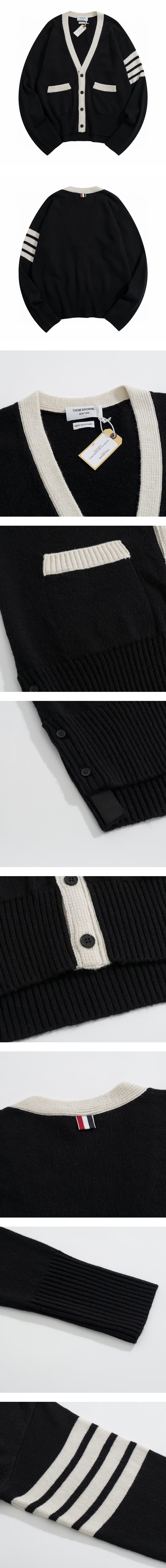 TB. WHITE LINE CASHMERE CARDIGAN